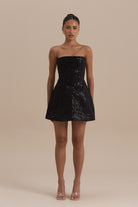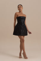Den korsettinspirerade silhuetten och det intrikata paljettlagret ger en subtil glans som fångar ljuset på ett elegant sätt – perfekt för november- och decemberkvällar.