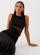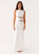 Höj din kvällsstil med Signe Maxiklänning. Med en rund halsringning och stretchigt jerseymaterial ger den en smickrande passform som kombinerar komfort och elegans. Den semigenomskinliga spetsmidjan skapar en subtil kontrast och ger klänningen en sofistikerad touch – perfekt för oförglömliga kvällar.